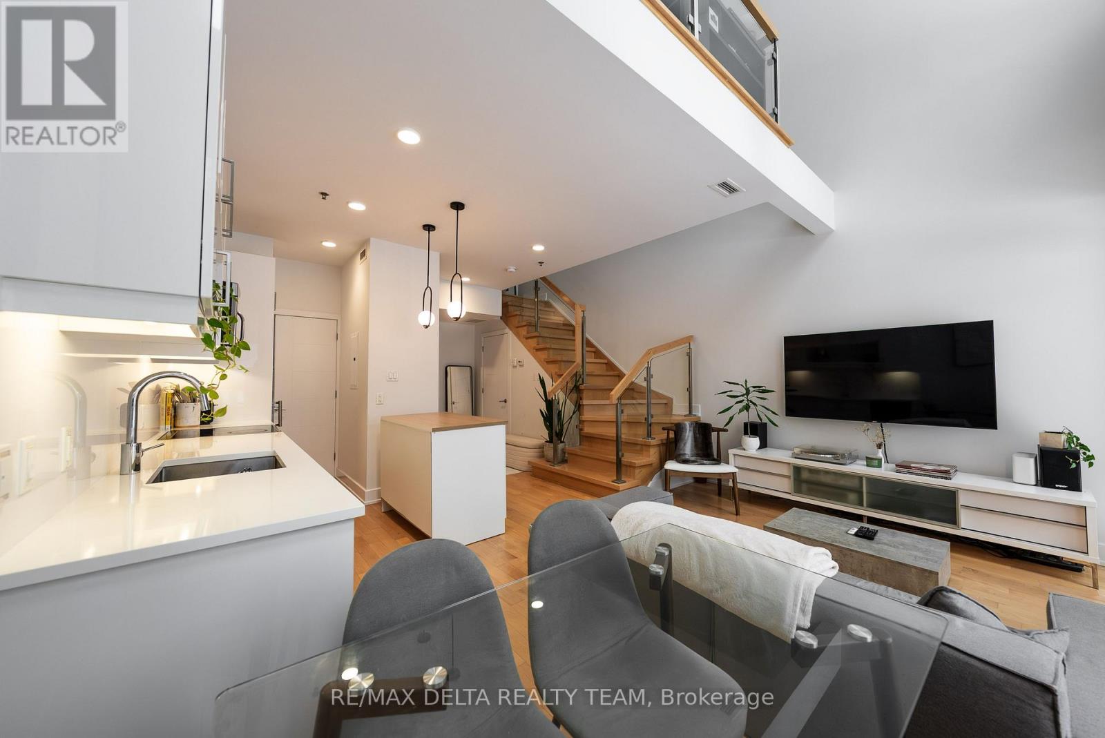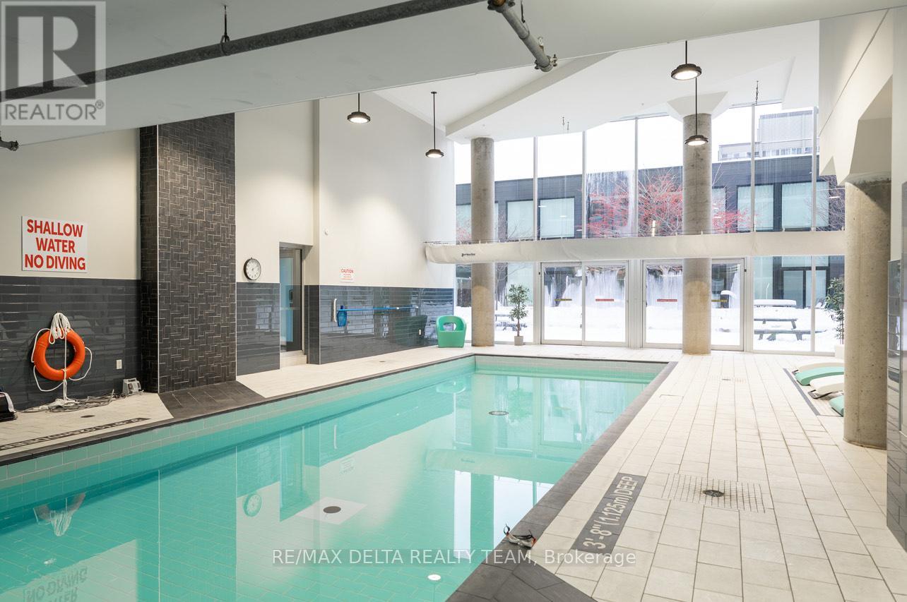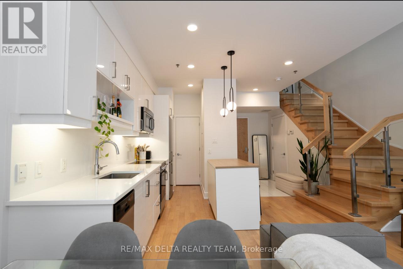 A rare offering in one of downtown Ottawa's most prestigious addresses. This exceptional residence at Tribeca Lofts by Claridge Homes showcases dramatic two-storey floor-to-ceiling windows, delivering a sophisticated loft aesthetic while bathing the interior in natural light and framing tranquil treed courtyard views. Designed for discerning urban living, this refined home offers a seamless blend of privacy and vibrancy in the heart of Canada's Capital. Ideally positioned moments from Parliament Hill, the Rideau Canal, ByWard Market, and Rideau Centre, the location is surrounded by Ottawa's finest restaurants, cafés, galleries, and cultural landmarks-all while enjoying the convenience of Farm Boy at your doorstep. A private walkout terrace opens directly to a lush, landscaped courtyard-an elegant extension of your living space and a serene retreat for outdoor entertaining. This unique ground-level access eliminates reliance on elevators and provides immediate access to the building's resort-style amenities, including an indoor pool, sauna, fully equipped fitness centre, resident lounge, boardroom, and courtyard BBQs.Additional luxury conveniences include guest suites for visitors, secure underground parking, a storage locker, and dedicated bicycle storage. Thoughtfully designed and impeccably located, this residence offers a rare opportunity to enjoy sophisticated city living with the tranquillity of a private enclave. An exceptional home for those who value luxury, lifestyle, and location. (id:28469)