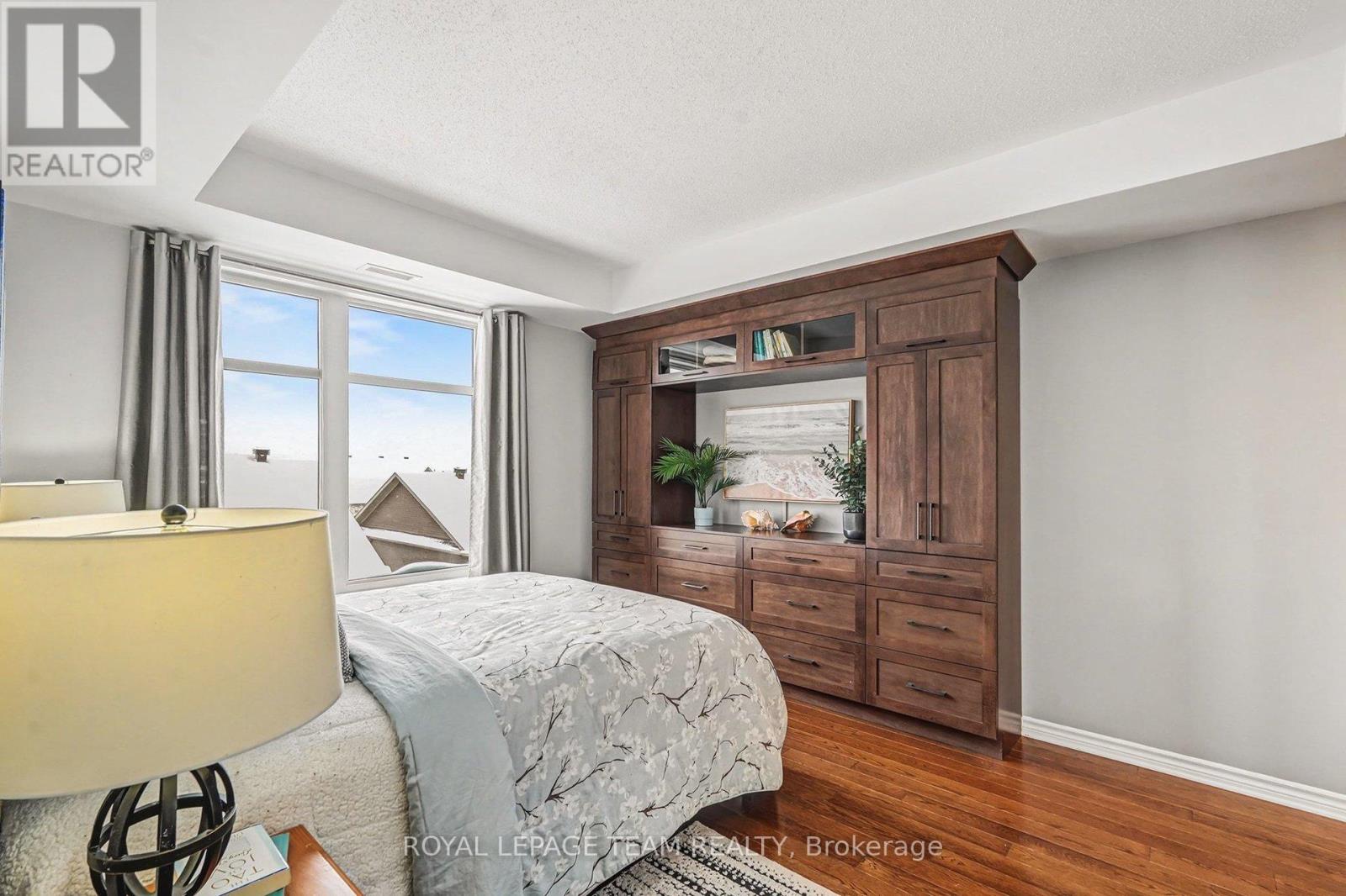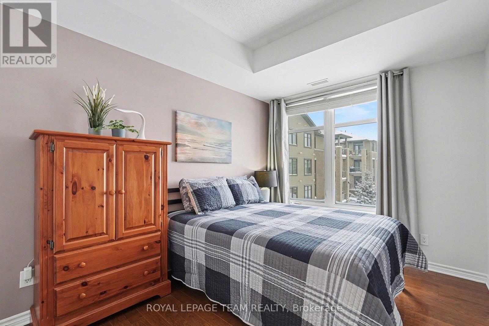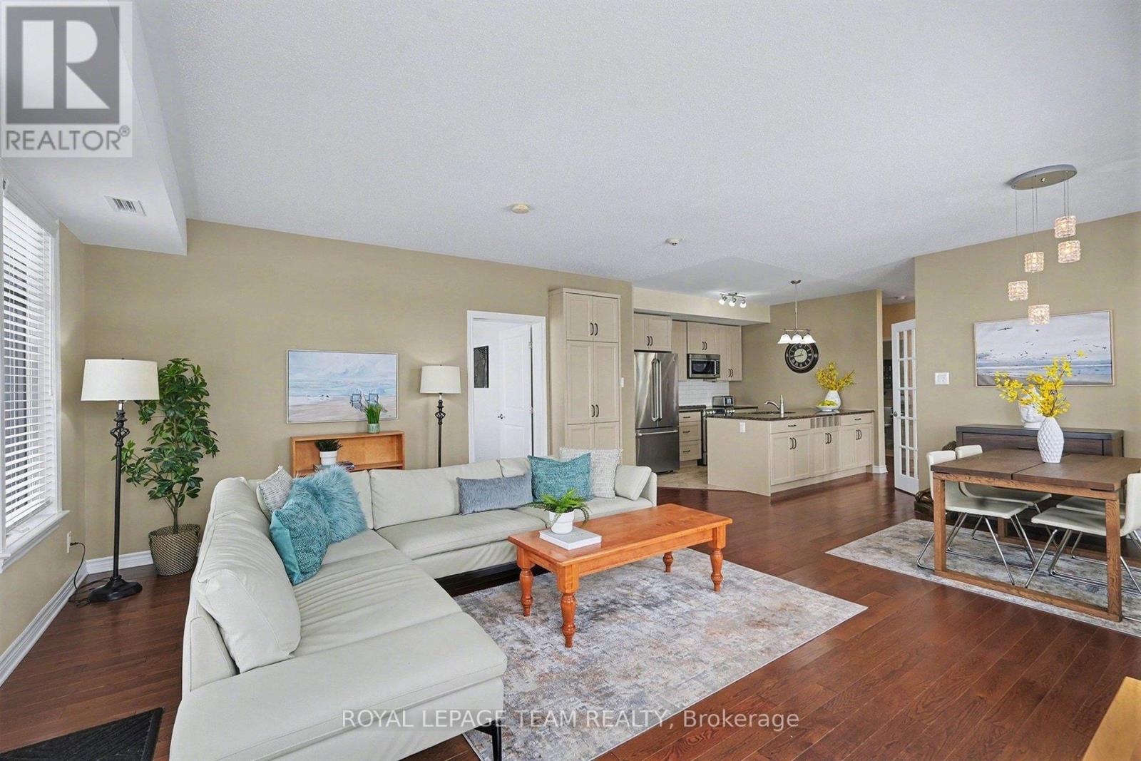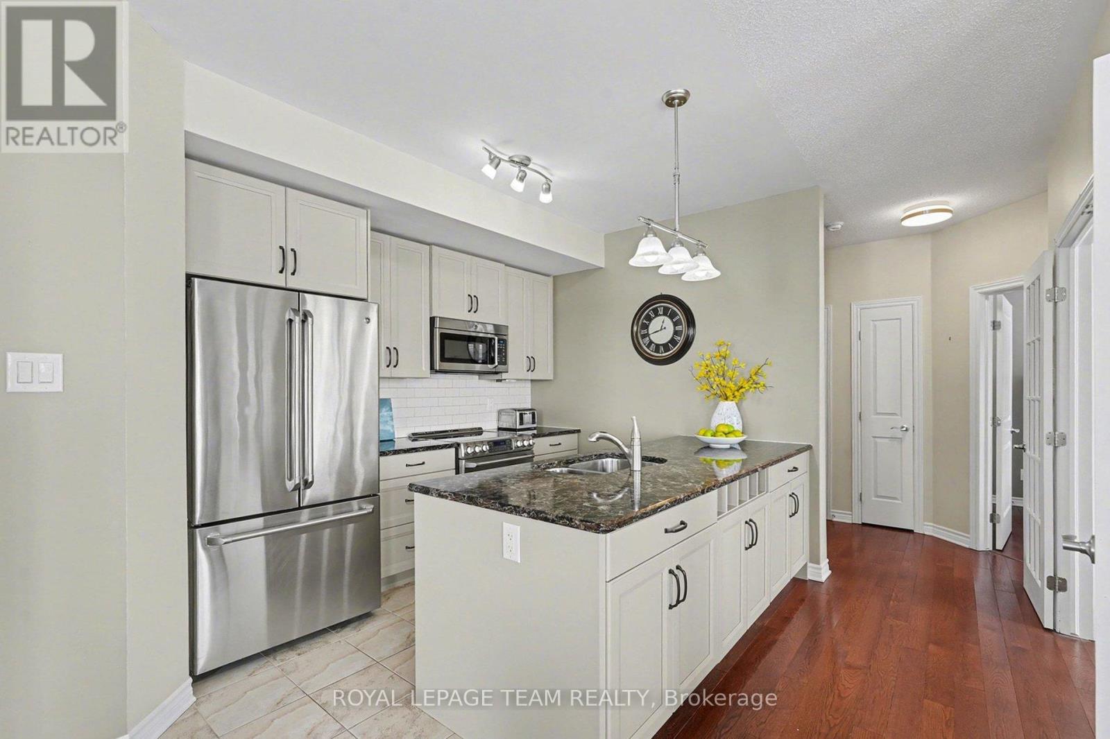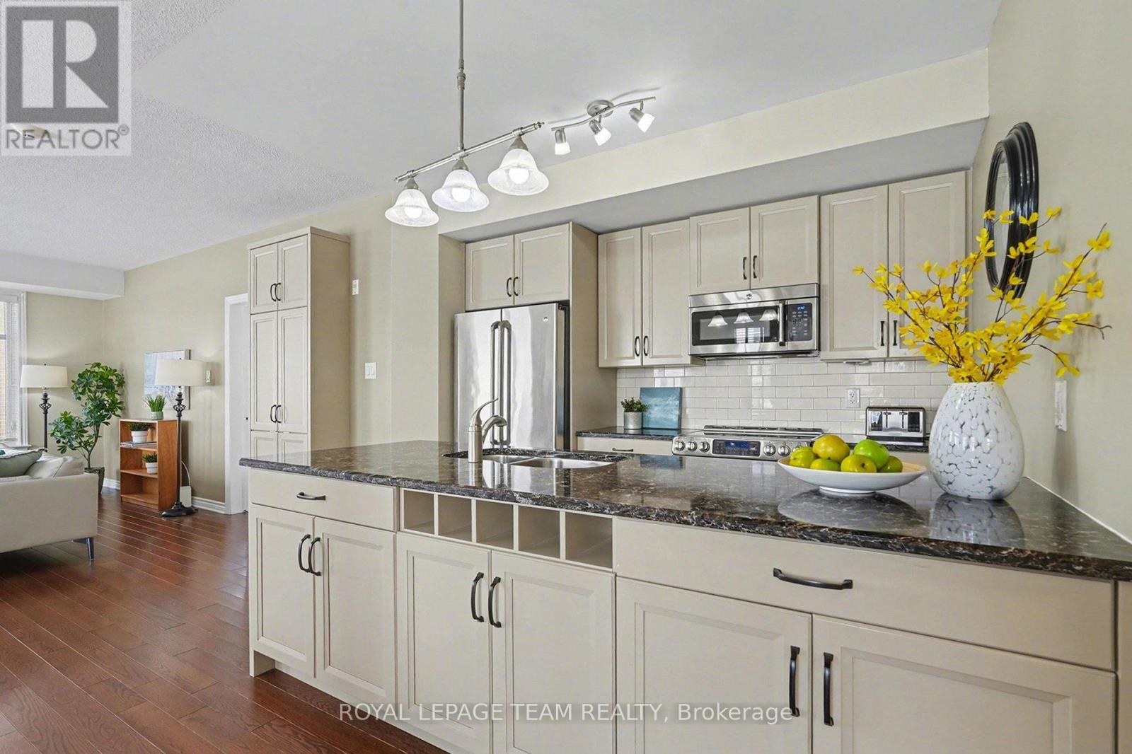 $741.08 MonthlyThis bright and spacious 2-bedroom + den, 2-bathroom end-unit condo offers 1,335 sq. ft. of elegant living space in the heart of Stittsville. The open-concept kitchen is a chef's delight, featuring stainless steel appliances, pull-out pot & pan drawers, stone countertops, a large peninsula with prep area, and an additional pantry. Natural light floods the living and dining areas, which feature hardwood floors throughout for seamless transitions. Located off the kitchen, the den features French doors and offers flexible space perfect for a home office, hobby room, or cozy reading nook. Enjoy outdoor living with East-facing balcony equipped with a natural gas BBQ hookup-a rare find in condo living. The primary bedroom includes custom built-ins for added storage, a walk-in closet, and a 4-piece ensuite. The second bedroom is conveniently located adjacent to the main bathroom, providing an ideal layout for guests. This low-rise building includes an elevator, 1 heated underground parking space(P1), generously sized storage locker(L1) and one exterior parking space (#12). Ideally situated close to walking trails, parks, shopping, and public transit, this home is an excellent choice for professionals or downsizers seeking comfort and convenience. (id:28469)